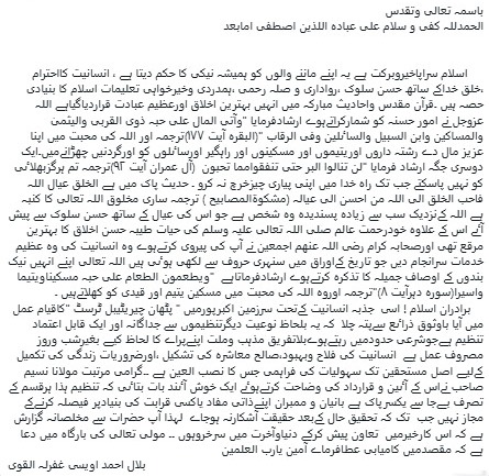 सर्वशक्तिमान और पवित्र के नाम पर - इस्लाम एक शान्ति एवं मानवता का धर्म है : इस्लाम एक शान्ति एवं मानवता का धर्म है। यह हमेशा अपने अनुयायियों को अच्छाई करने का आदेश देता है। मानवता के प्रति सम्मान ईश्वर की रचना के साथ अच्छा व्यवहार सहिष्णुता और भाईचारा करुणा और सद्भावना इस्लाम की मूल शिक्षाएँ हैं। पवित्र कुरान और अन्य हदीसों में इनका उल्लेख किया गया है। इसे सबसे बेहतरीन नैतिकता और अल्लाह की सबसे बड़ी इबादत बताया गया है। अल्लाह सर्वशक्तिमान ने नेक कामों को गिनाते हुए कहा और अपने माल को अपने रिश्तेदारों अनाथों जरूरतमंदों मुसाफिरों भिखारियों और भूखे लोगों के लिए प्यार से खर्च करो। तुम कभी भी नेकी को प्राप्त नहीं कर सकोगे। जब तक कि तुम अल्लाह के मार्ग में अपनी प्रिय राशि से खर्च न करो। अल.इमरान आयत 92 दफा तर्जुमा तुम कभी नेकी हासिल नहीं कर सकते जब तक कि तुम अपनी पसंद की चीजों में से अल्लाह की राह में खर्च न करो। हदीस शरीफ में है। कि मखलूक अल्लाह की नेक बन्दे है। इसलिए मखलूक से अल्लाह की मोहब्बत करो जो उससे ज्यादा मोहब्बत करता है। अल्लाह के लिए सबसे प्रिय व्यक्ति है। जो अपने परिवार के साथ दयालुता से पेश आता है। उसके प्रति पैगंबर मुहम्मद स0अ0 ने शांति का जीवन और अच्छा चरित्र अल्लाह का संदेश सबसे अच्छा है। पैगम्बर सल्लल्लाहू अलैहि वसल्लम एक महान व्यक्ति थे। और उनके साथियों को देखकर अल्लाह उन सभी पर प्रसन्न हो जाता है। जिसने उनका अनुसरण किया और मानवता के लिए महान सेवाएं कीं जो पवित्र कुरान में स्वर्ण अक्षरों में लिखी गई हैं। अल्लाह तआला अपने नेक बंदों की खूबसूरत खूबियों का जिक्र करते हुए कहते हैं। और वे गरीबों और अनाथों को एक साथ खिलाते हैं। और वे अल्लाह के रहमो करम से गरीबों अनाथों को खिलाते है।ं और बन्दी को भी। इस्लामिक भाइयों मानवता की इसी भावना के तहत अकबरपुर की धरती पर पठान चैरिटेबल ट्रस्ट की स्थापना की गई। विश्वसनीय सूत्रों से ज्ञात हुआ। कि यह एक विश्वसनीय संगठन है। जो स्वभाव से अन्य संगठनों से अलग है। जो शरीयत की सीमाओं में रहता है। तथा मानवता के कल्याण और भलाई में दिन.रात लगे रहते हैं। चाहे वे किसी भी धर्म व समाज के हों। संगठन का उद्देश्य एक अच्छे समाज का निर्माण करना और वास्तविक हकदारों को जीवन की आवश्यकताओं को पूरा करने के लिए सुविधाएँ प्रदान करना है। अपने संविधान की व्याख्या करते हुए और संकल्प आदरणीय मौलाना नसीम साहब ने एक सुखद बात कही कि यह संस्था किसी भी तरह की हेराफेरी से पूरी तरह मुक्त है। संस्थापक और सदस्य अपने निजी हितों या किसी रिश्तेदारी के आधार पर निर्णय लेने के लिए अधिकृत नहीं हैं। जब तक कि जांच के बाद सच्चाई सामने न आ जाए इसलिए मैं आपसे ईमानदारी से अनुरोध कर